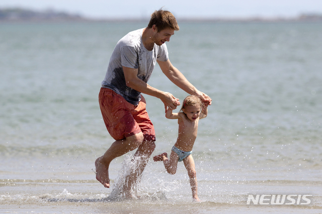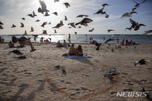 이스라엘, 코로나19 폐쇄 완화…해변 즐기는 사람들