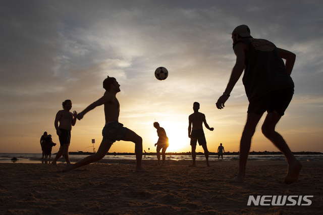 해변서 공놀이 즐기는 이스라엘 사람들