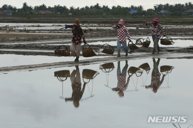 소금 작업하는 캄보디아 근로자들