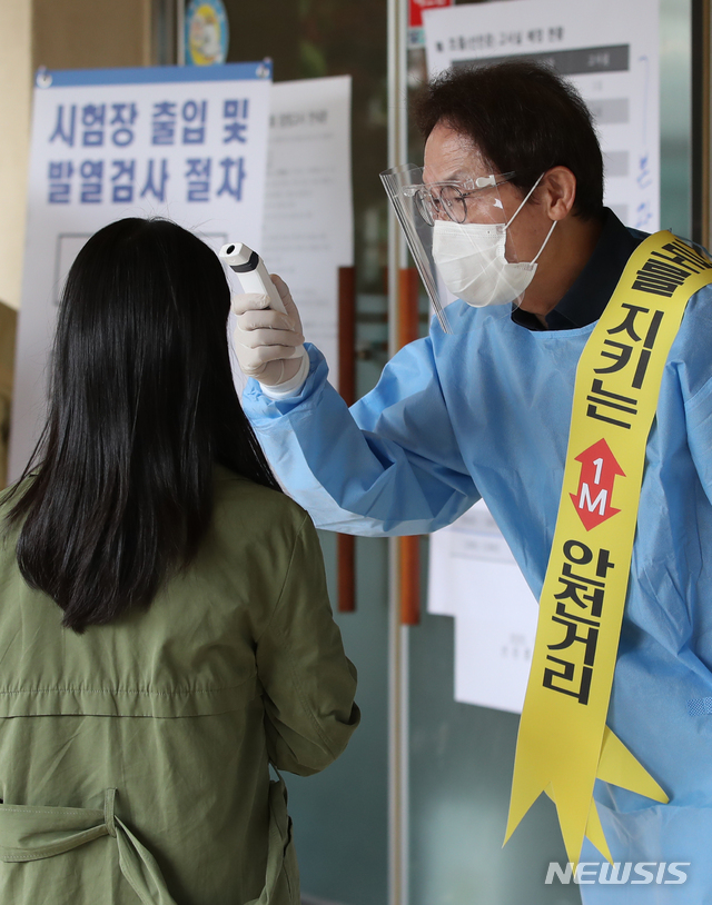 검정고시 수험생 발열확인하는 조희연 교육감