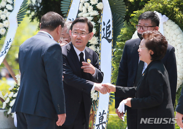 권양숙 여사와 인사하는 주호영 원내대표