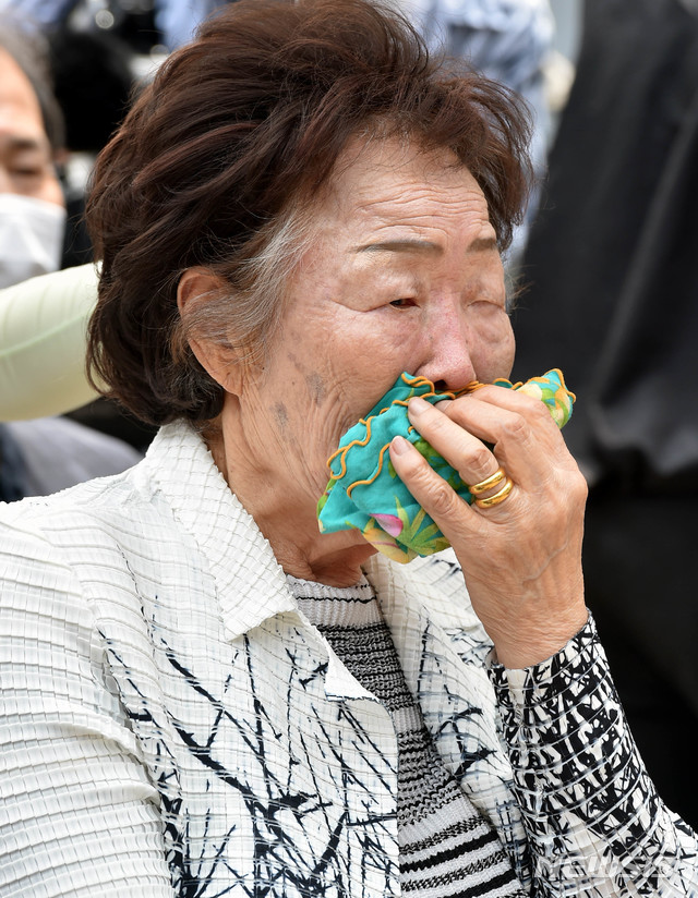 '눈물 흘리는 이용수 할머니'