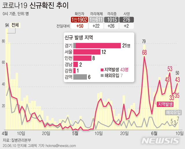 [그래픽]코로나19 신규확진 50명…지역감염 43명중 40명이 수도권