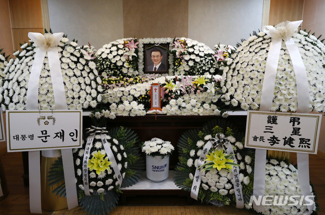 홍사덕 전 국회부의장 빈소에 놓인 조화