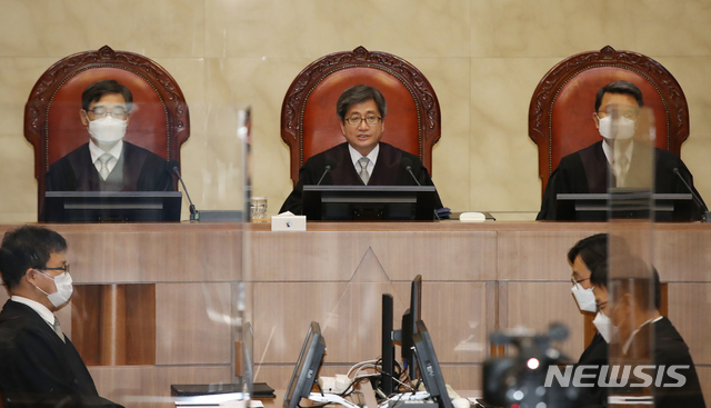투명 가림막 설치된 대법원 대법정