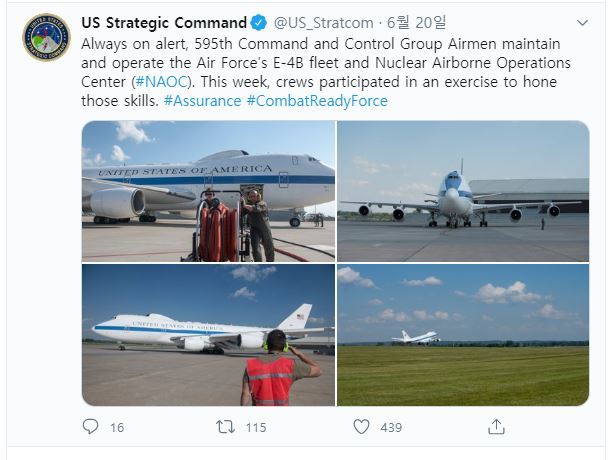 미 전략사령부, 핵공중지휘통제기 E-4B 훈련 공개