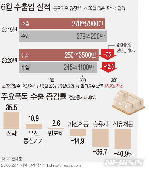 [그래픽]6월 1∼20일 수출 7.5% 감소