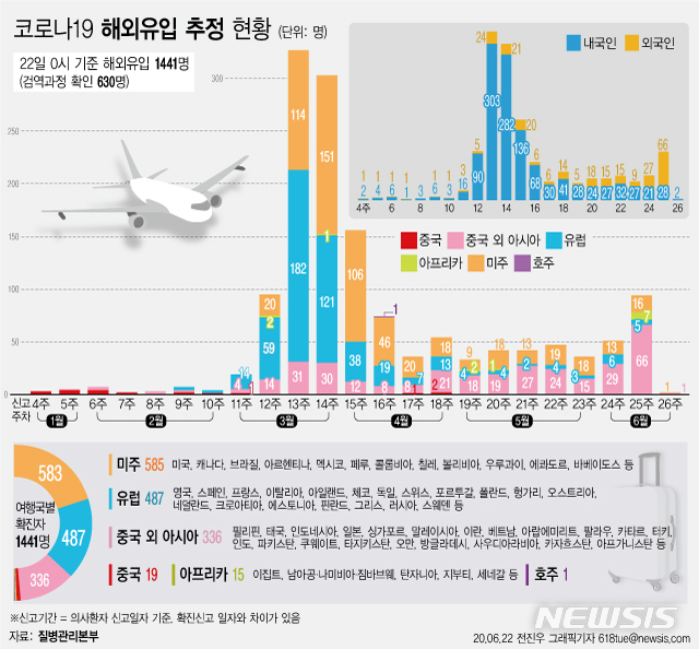 [그래픽]코로나19 해외유입 1441명…전체 확진자의 11.58%