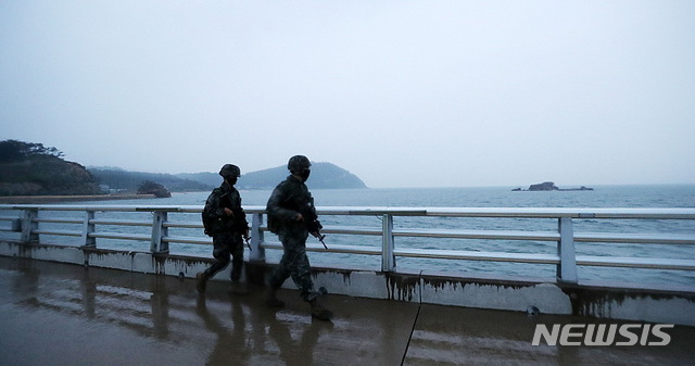 해안 순찰하는 해병대원들