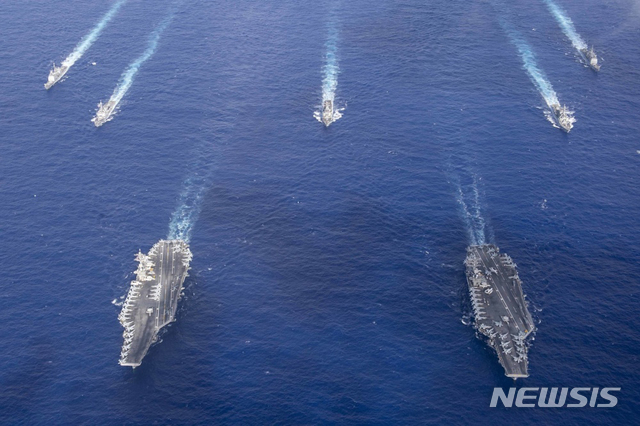핵추진 항공모함 시어도어루스벨트함과 니미츠함 필리핀해 훈련