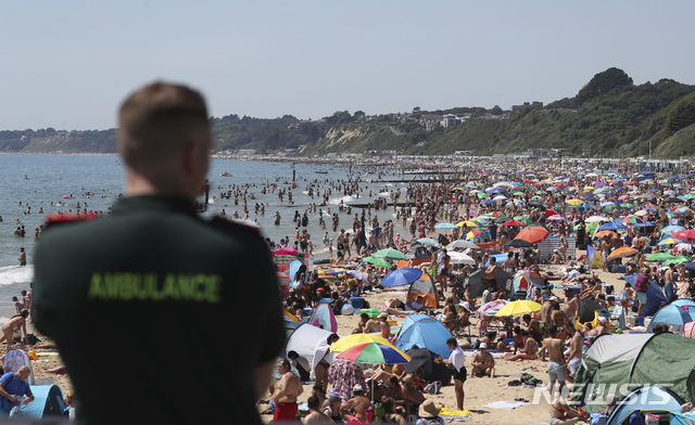 올 최고 무더위 영국, 해변에 몰린 인파