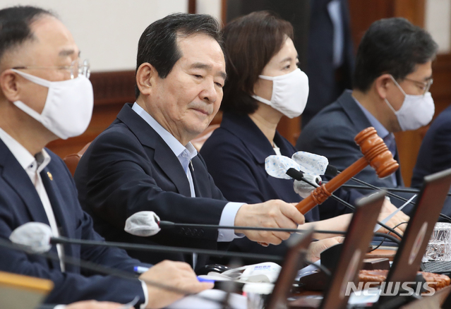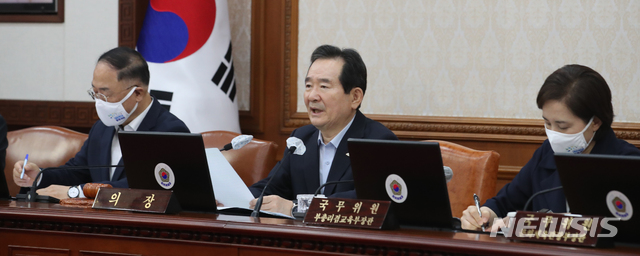 임시 국무회의, 발언하는 정세균 총리