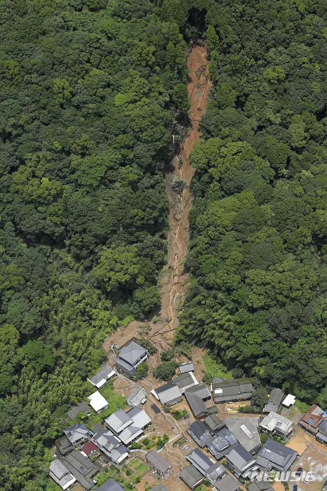 집중호우로 산사태가 발생한 일본 구마모토현 마을
