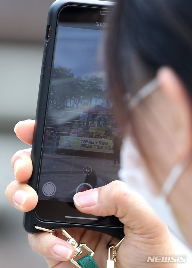 '정부 부동산 대책 반발 집회 핸드폰에 담는 시민