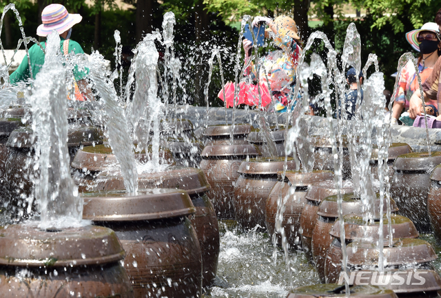 장독대 분수에서 뿜어져 나오는 물줄기