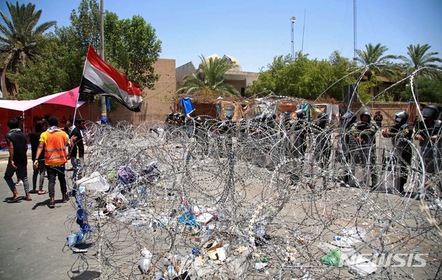 그린존 경계하는 이라크 시위진압 경찰
