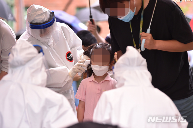 발열검사 받는 유치원생