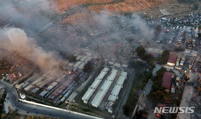 그리스 난민수용소 화재, 1만2천여 난민 대피