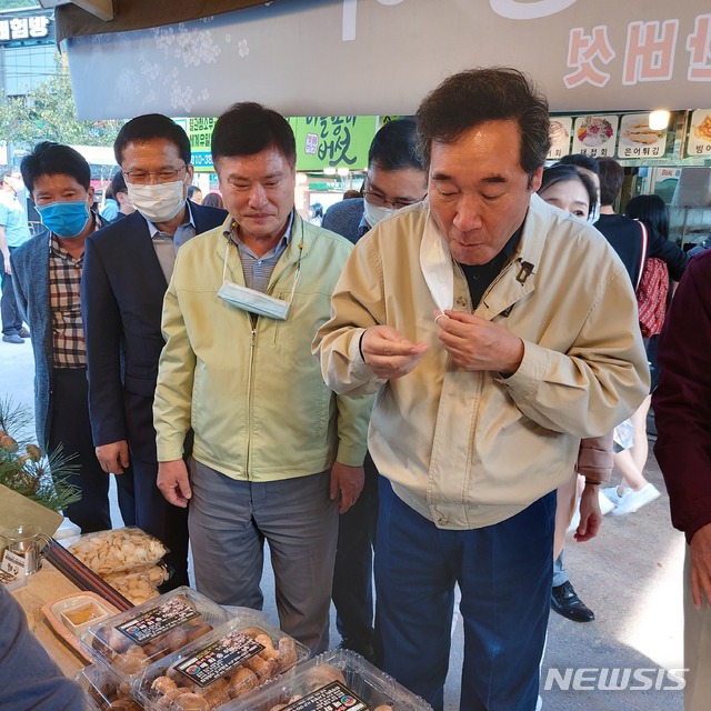 더불어민주당 이낙연 대표 하동 화개장터 방문, 수해입은 상인 위로