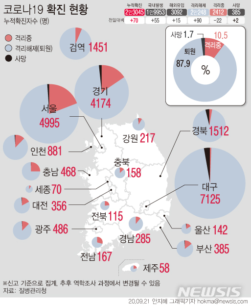 [그래픽]코로나19 지역별 확진 현황