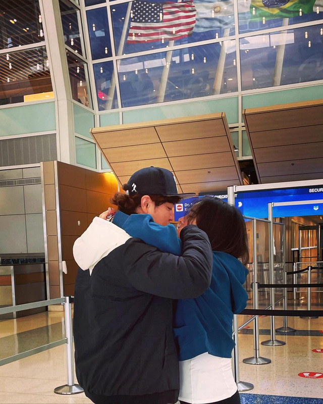 한국 향하는 추신수 배웅한 아내 하원미씨