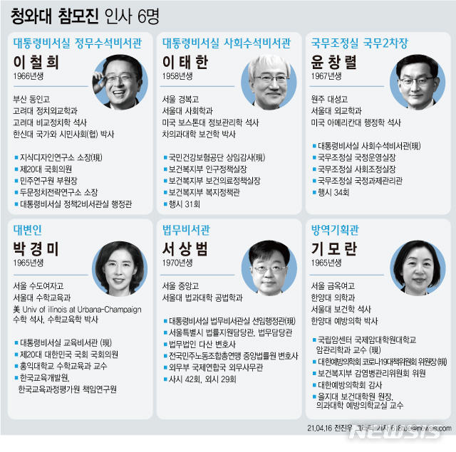 [그래픽] 靑정무수석 이철희·사회수석 이태한 등 6명 참모진 인사