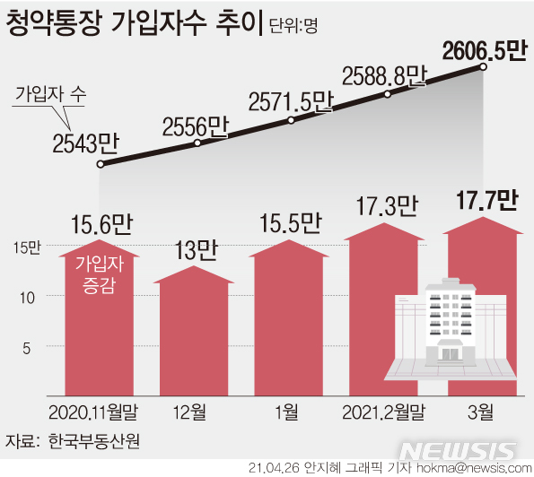 [그래픽] 청약통장 가입자 한 달 새 17.7만명 늘어
