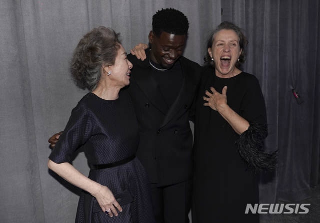 브래드 피트와 포즈 취한 '최우수 여우조연상' 윤여정