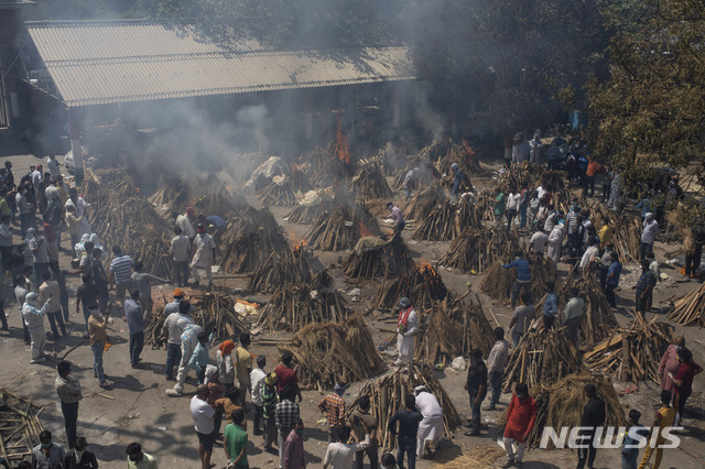 코로나19 확산 속 인도 노천 화장터의 모습