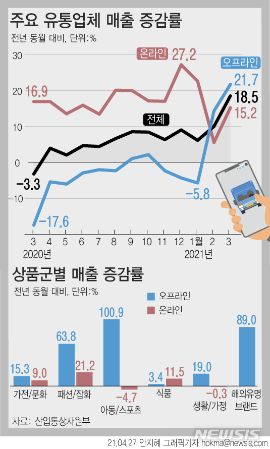 [그래픽] '봄세일·기저효과' 유통사 매출 18% 증가
