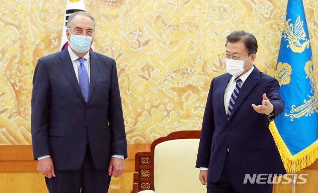 노바백스 최고경영자(CEO)와 기념촬영 하는 문재인 대통령