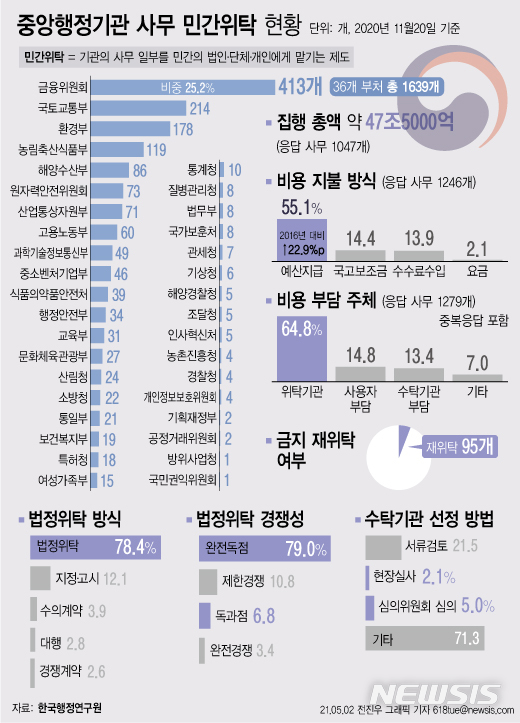 [그래픽] 중앙행정기관 사무 민간위탁 현황