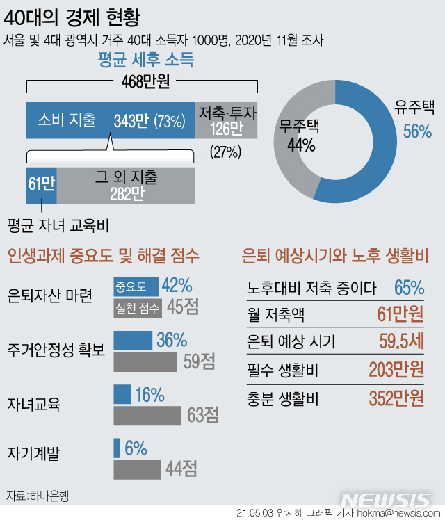 [그래픽] 40대 88%, 사교육비 월 107만원 지출…은퇴자산은 61만원 저축