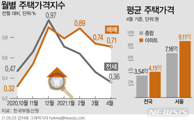 [그래픽] 서울 집값 상승률 2개월째 둔화…0.38%→0.35%
