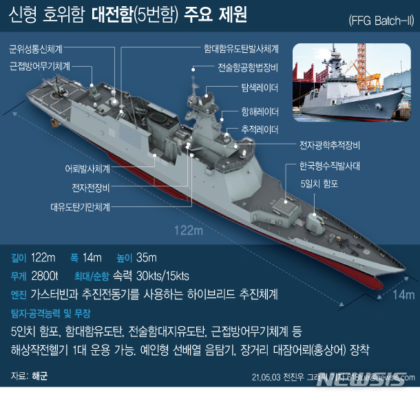 [그래픽] 신형 호위함 ‘대전함’ 주요 제원