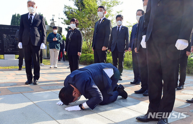김대중 대통령 묘역 큰절 하는 송영길 대표