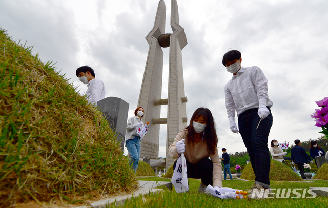 국립5·18민주묘지에 태극기 꽂는 신규공무원