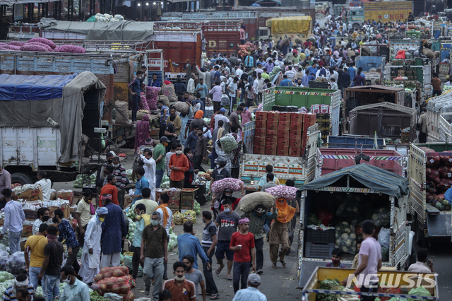 인도, 확진자 2천만 넘었어도 시장에 몰린 인파