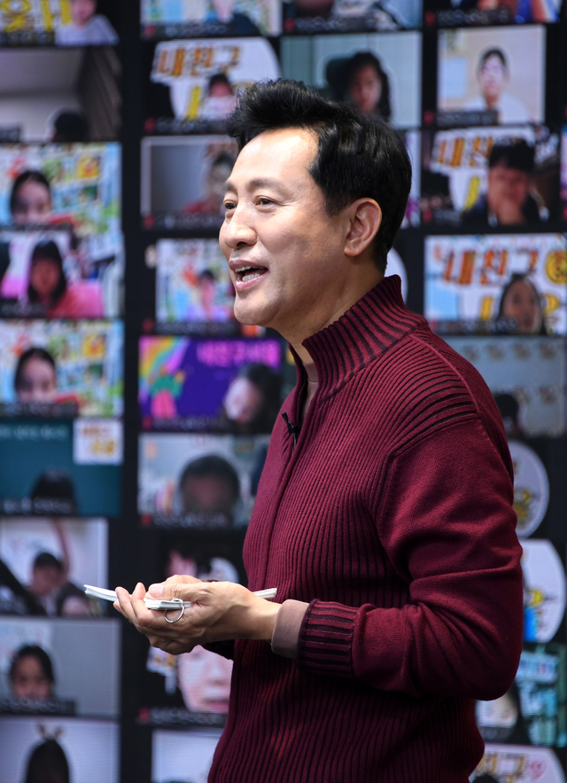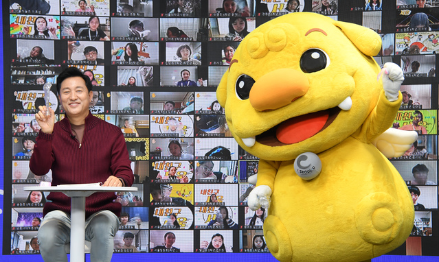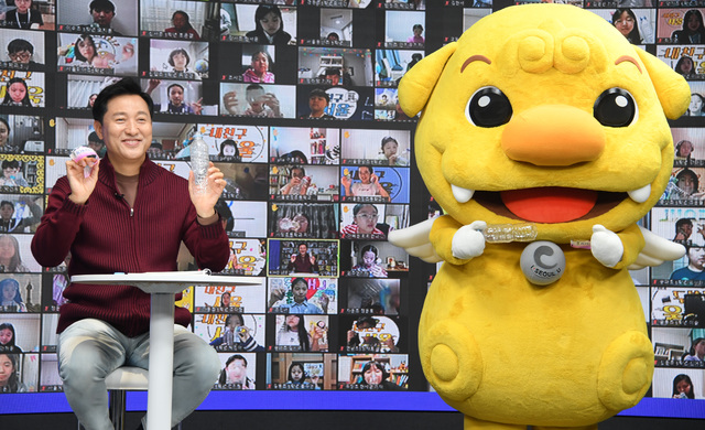 화상으로 어린이 기자단과 대화하는 오세훈 시장