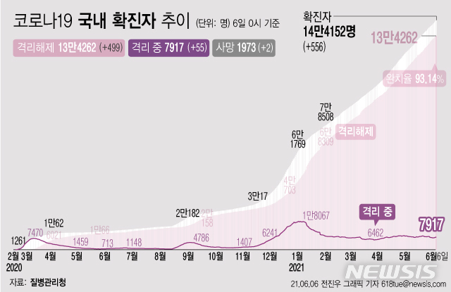 [그래픽] 누적 확진 14만4152명…격리 중 7917명