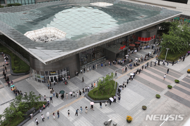삼성역 임시선별검사소 '돌고 돌아 길고 긴 줄'