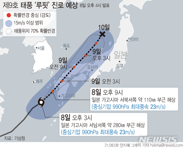 [그래픽] 제9호 태풍 ‘루핏’ 진로 예상