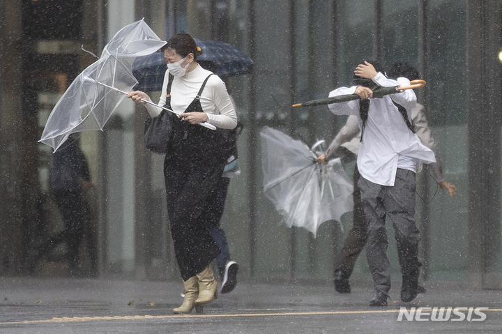 태풍 민들레로 우산도 무용지물