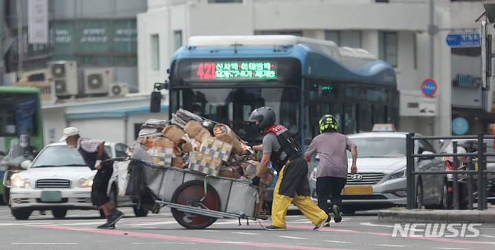 '리어카 뒤로 밀린다' 오토바이 두고 달려온 운전자들