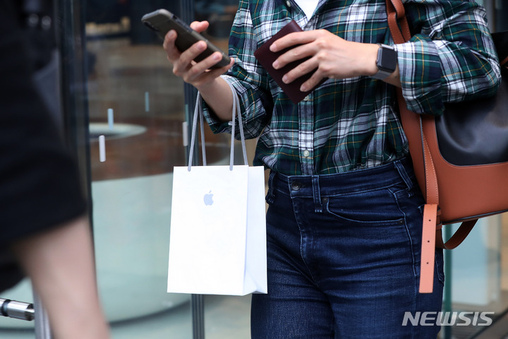 아이폰13 시리즈 살펴보는 시민들