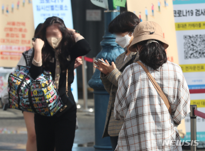 쌀쌀해진 날씨, 가을옷 입고 코로나19 검사 대기