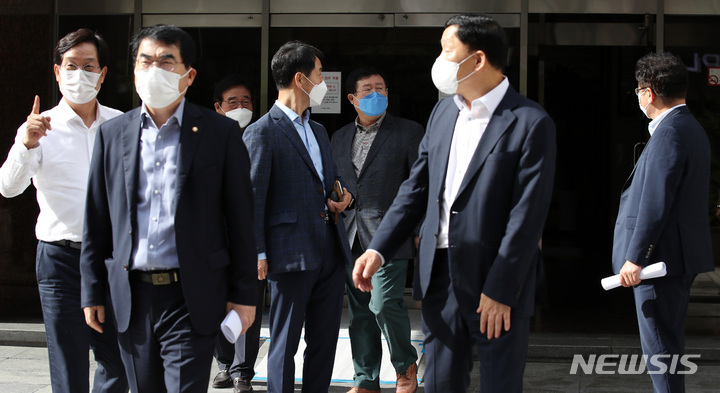 무효표 처리 이의제기 관련 회의 마친 이낙연 캠프 소속 의원들