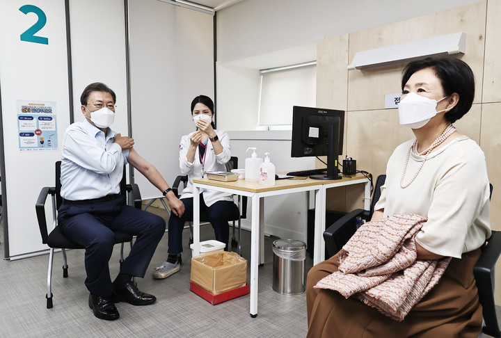 코로나19 백신 추가 접종 받는 문재인 대통령 내외