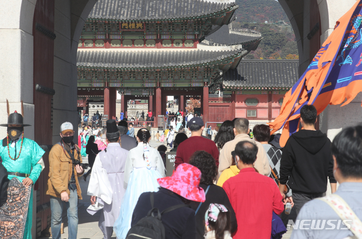 위드 코로나 첫 휴일 경복궁 풍경