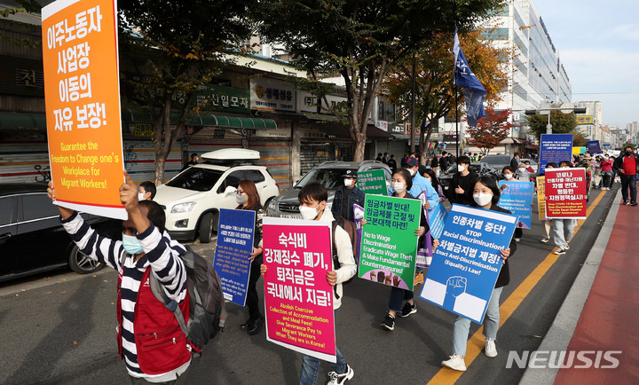 행진하는 이주노동자